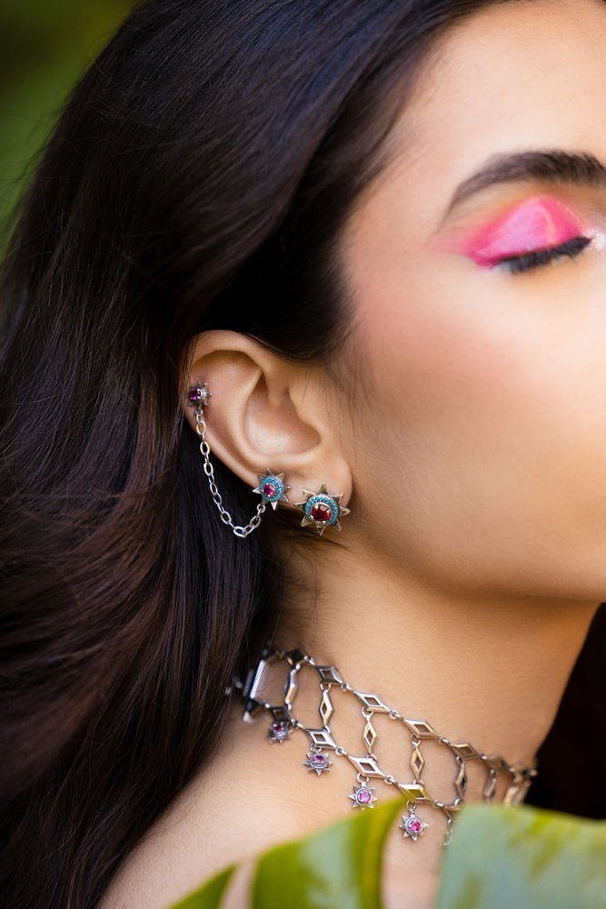 We craft our jewellery using high-quality materials, including silver plated and 21k gold plated brass (double coated), sterling silver 925, and 18k gold plated sterling silver 925. The piece is perfectly finished with zircon stones.